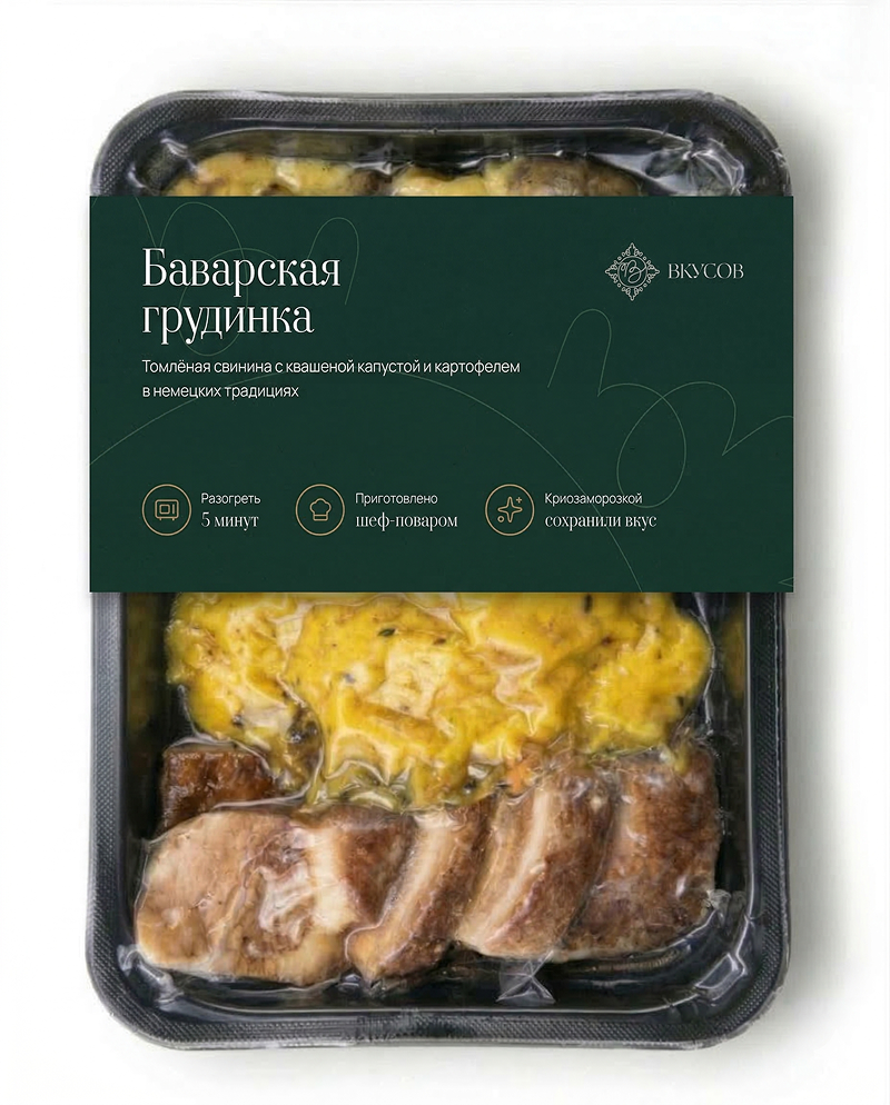 Классическая свиная грудинка с хрустящей корочкой, маринованная в пиве и специях. Выразительная мясная позиция для витрины и меню.