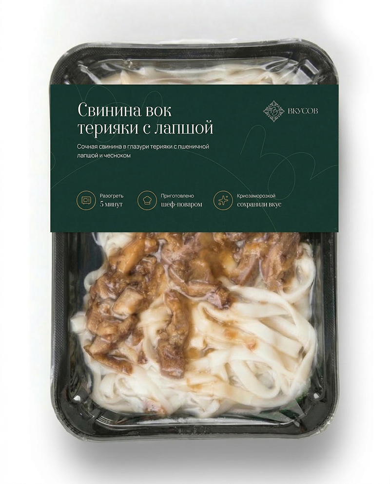 Ароматная грудинка с имбирём, чесноком и лапшой в соусе терияки. Сытная азиатская позиция для меню и retail.