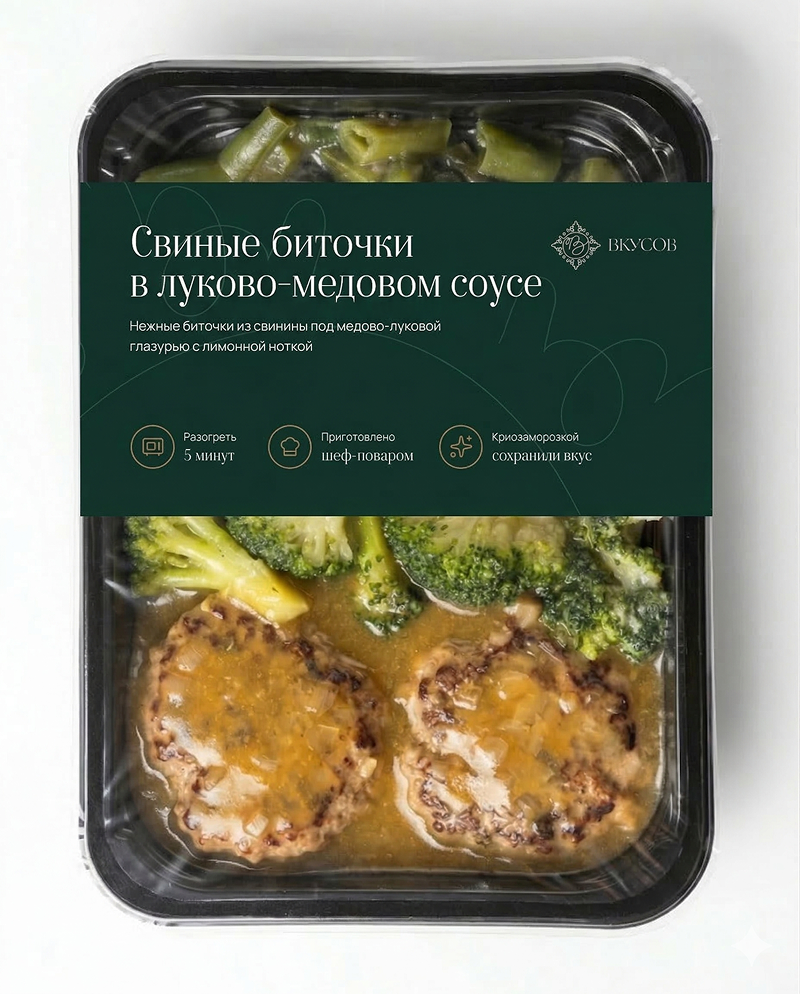 Нежные свиные биточки в сладко-пряном луково-медовом соусе. Хорошо работают в формате готовых вторых блюд.