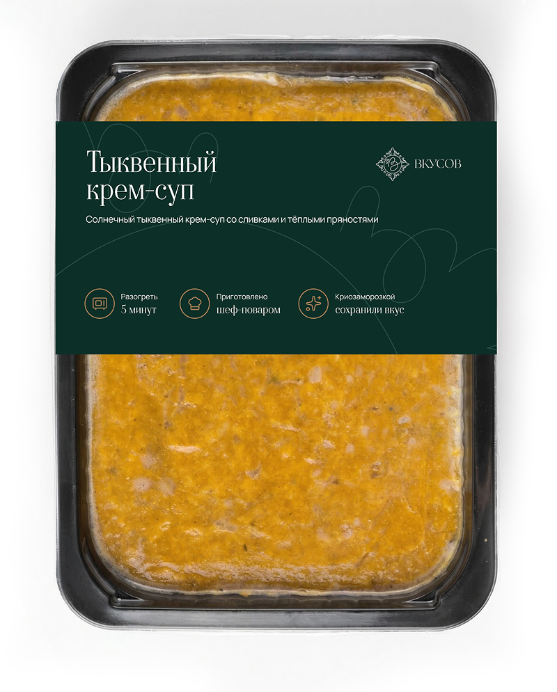 Нежный суп из запечённой тыквы со сливками. Мягкий вкус и эффектная подача для премиальной линейки.